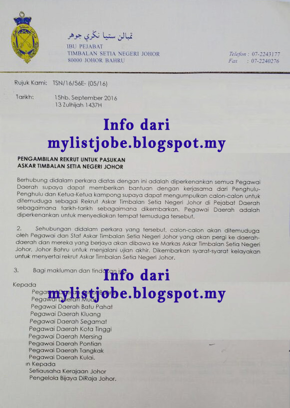 Jawatan Kosong Di Askar Timbalan Setia Negeri Johor Jmf Oktober 2016 Appjawatan Malaysia