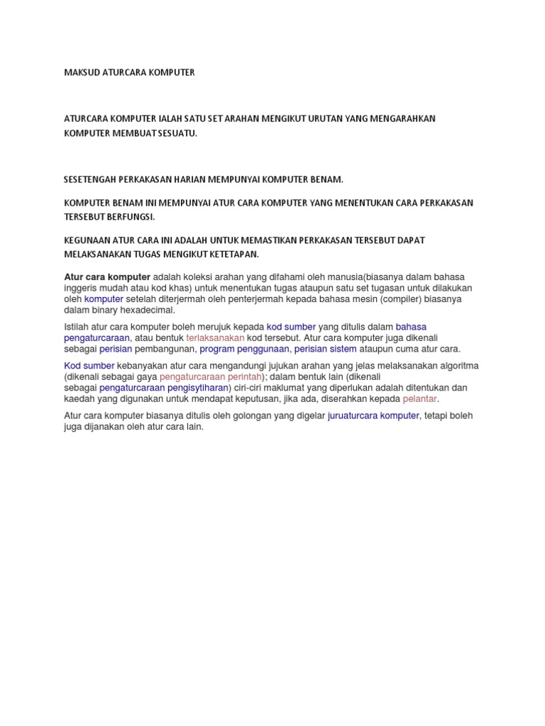 Aturcara Komputer Ialah Satu Set Arahan Mengikut Urutan