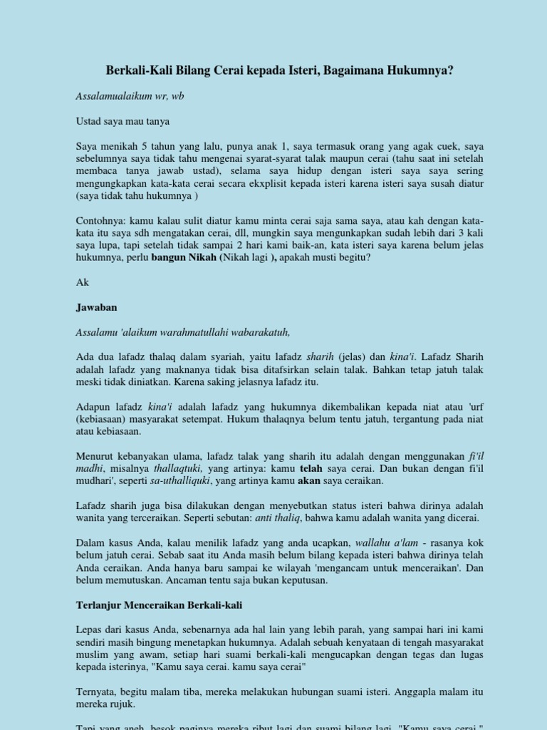 Hukum Taklik Talak Dalam Perkawinan Tanyajawabfikih Com