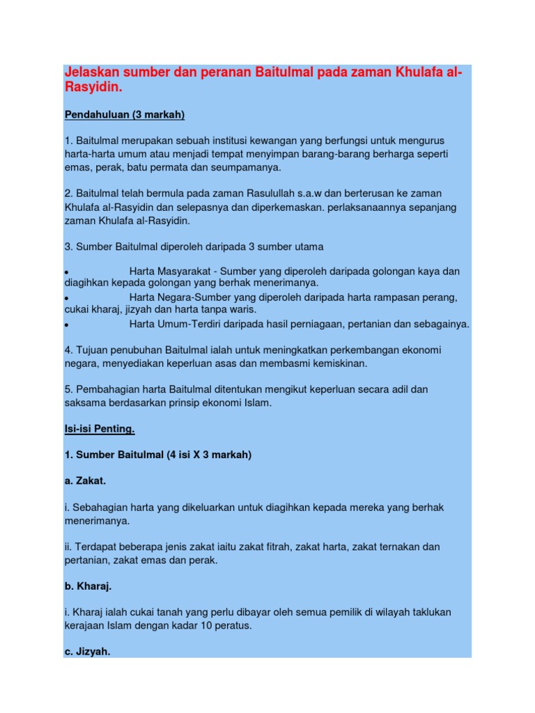 Jelaskan Sumber Dan Peranan Baitulmal Pada Zaman Khulafa Al Rasyidin