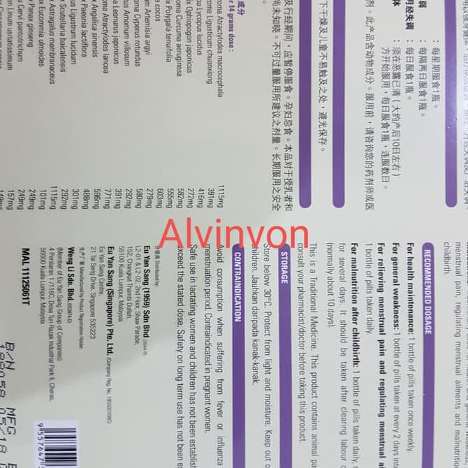 Termurah Eu Yan Sang Bak Foong Pills Supplemen Wanita Recommended Shopee Indonesia