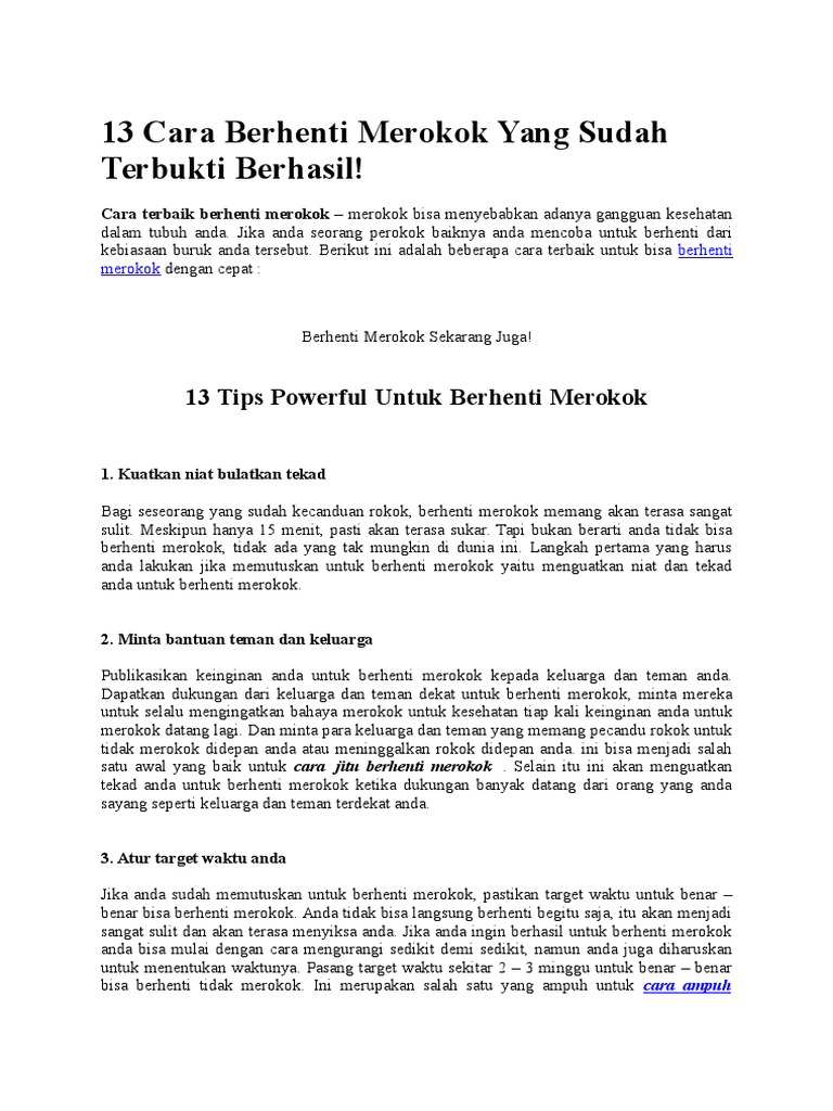 Berikut ini adalah beberapa cara terbaik untuk bisa berhenti merokok dengan cepat. Anda bisa membuat rencana jangka pendek dengan berhenti merokok selama dua hari empat hari satu minggu dua minggu dan waktu yang lebih panjang. Hal tersebut merupakan sebagian orang ingin berhenti merokok dan mencari cara agar bisa berhenti merokok secara efektif. Jangan cuma memori android aja yang dihemat dengan berhenti merokok maka.