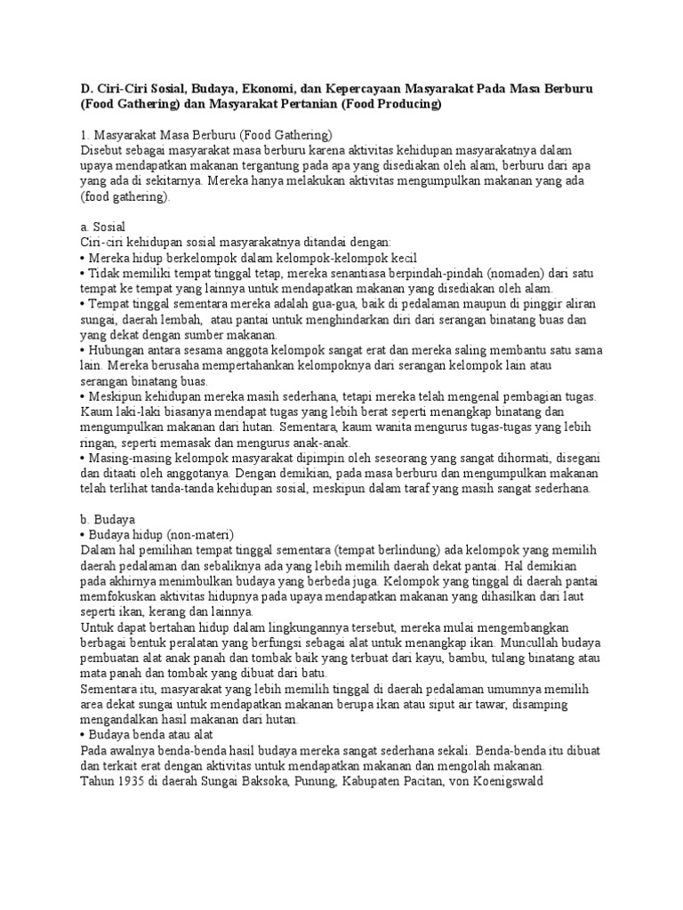 Ciri Sosial Budaya Ekonomi Dan Kepercayaan Pada Masa Berburu Dan Pertanian