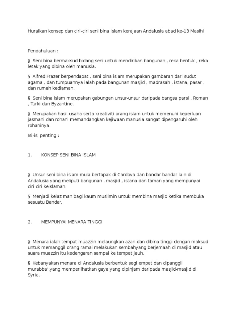 Ciri Ciri Seni Bina Islam Di Andalusia