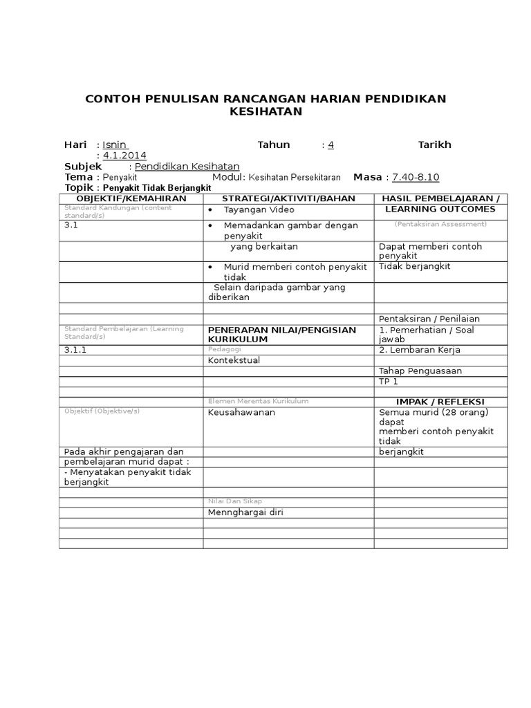 Cara Penulisan Rph Pk