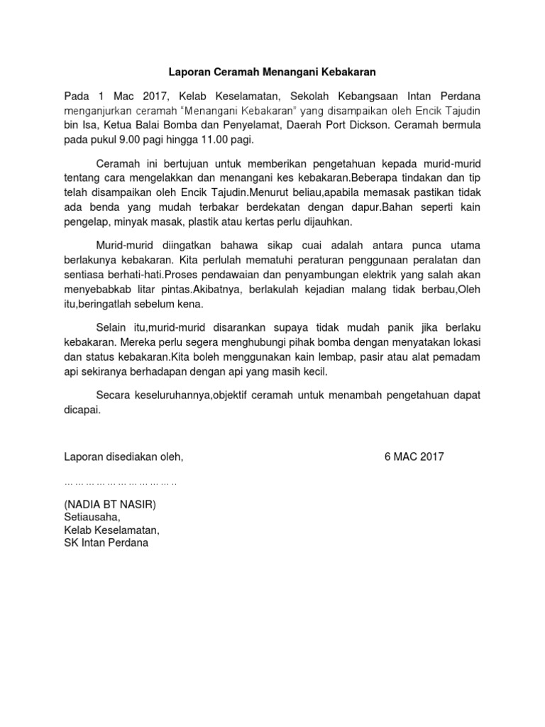 Contoh Karangan Laporan Kebakaran Br1m Reg