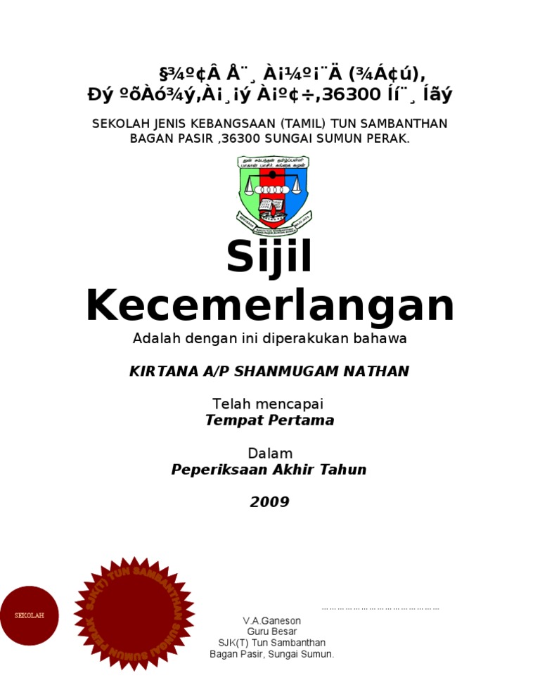 Contoh Sijil Kecemerlangan Akademik