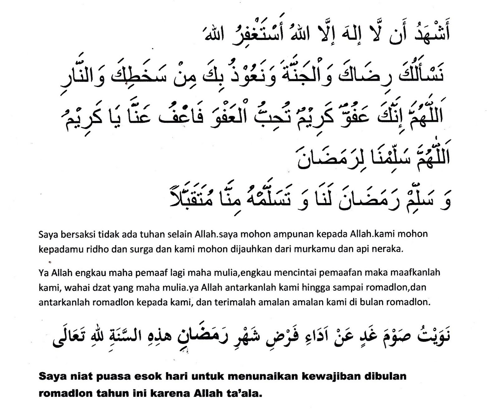 Niat Puasa Ramadhan