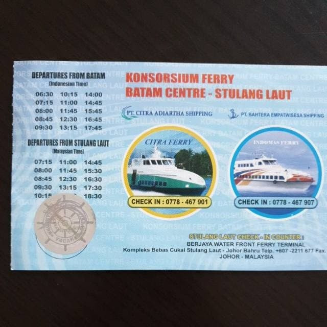 Jual Tiket Ferry Batam Johor Batam 3 Operator Kota Batam Sa 11 Tokopedia